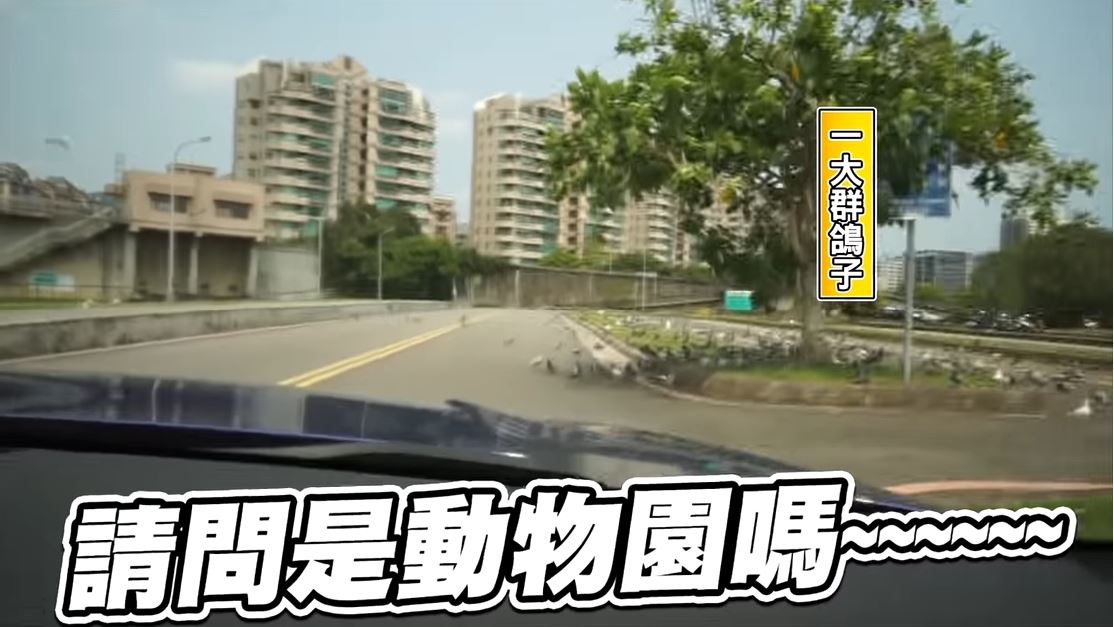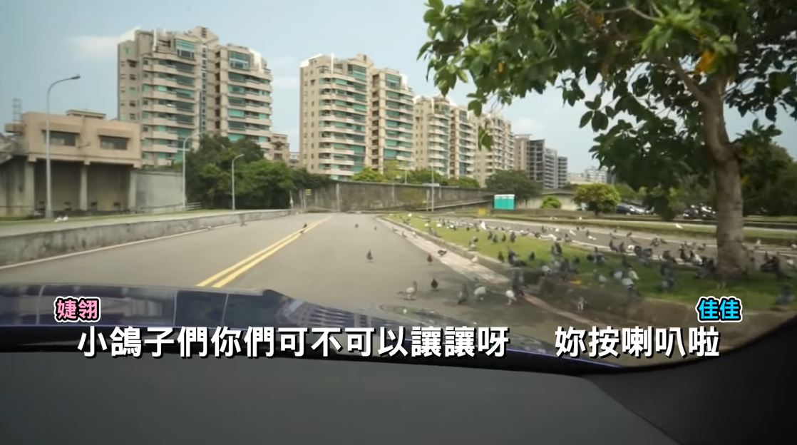 沒想到,好景不常,很快地「解婕翎」就遇到了試駕路上的第一難題,更讓她驚呼「你們可以看一下,前面發生什麼事嗎?」,等鏡頭一轉才發現原來在前方道路上的大樹下,聚集了一大群的鴿子,讓「解婕翎」大呼「請問是動物園嗎?」、「你們可不可以讓讓呀」,然而鴿子們卻無視於車內「解婕翎」等人的驚呼,依舊悠閒地閒晃著,就連「解婕翎」按了喇叭,也絲毫不動搖,場面十分逗趣。