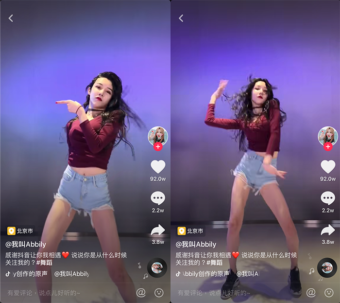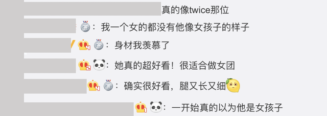 然而網友也紛紛在此篇貼文下方留言:「一開始真的以為他是女孩子」、「確實很好看,腿又長又細」、「她真的超好看!很適合做女團」、「身材我羨慕了」、「我一個女的都沒有他像女孩子的樣子」、「真的像twice那位」。Abbily也時常在抖音上發佈他跳舞的短影片,Abbily過去接受陸媒訪問時也提到,她從小時候學Hip-Hop時開始接觸到舞蹈,接著看到偶像金泫雅、T-ara在舞台上自信滿滿的模樣,激發他對舞蹈的熱愛。