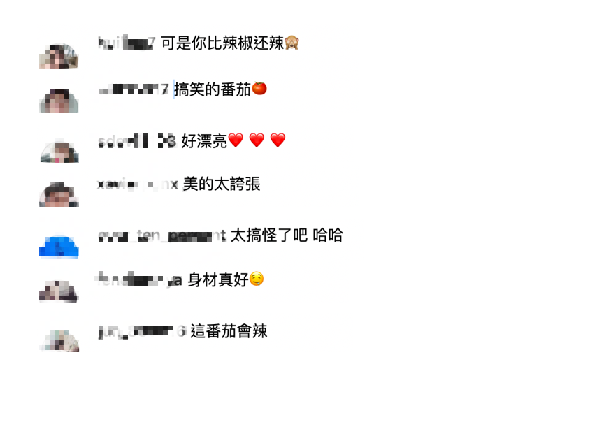 李花近日在IG上發出多張她穿著紅色連身泳衣的火辣照片,照片中李花擺出各種不同撩人的姿勢,而她的尺度相當大,其中一張在鏡子前自拍的照片,展露了她的神秘地帶,她也在內文中寫道:「別人都想當辣椒,而我只想做你ㄉ小番茄」,相當引人遐想,網友見狀此火辣性感的照片後,紛紛留言:「太搞怪了吧 哈哈」、「身材真好」、「可是你比辣椒還辣」、「這番茄會辣」、「美的太誇張」、「搞笑的番茄」