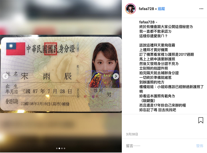 在3月底時,李花曾在IG上發布一則貼文寫道:「終於有機會跟大家公開這個秘密ㄌ,我一直都不敢承認ㄉ,這樣你還愛我ㄇ?」,並附上她的身分證照片,而在照片中性別那一欄顯示「男」,許多網友都相當震驚難道李花一直以來都是個男兒身,但隔天她立刻發文澄清自己只是開玩笑的,想讓大家提早過愚人節,寫下:「讓你們提早過愚人節啦!原本真的只是想打打嘴砲,沒想到這麼多人相信而且認真」,並附上一張露奶的照片道歉,而網友也爆笑的表示:「我以為我被掰彎了」