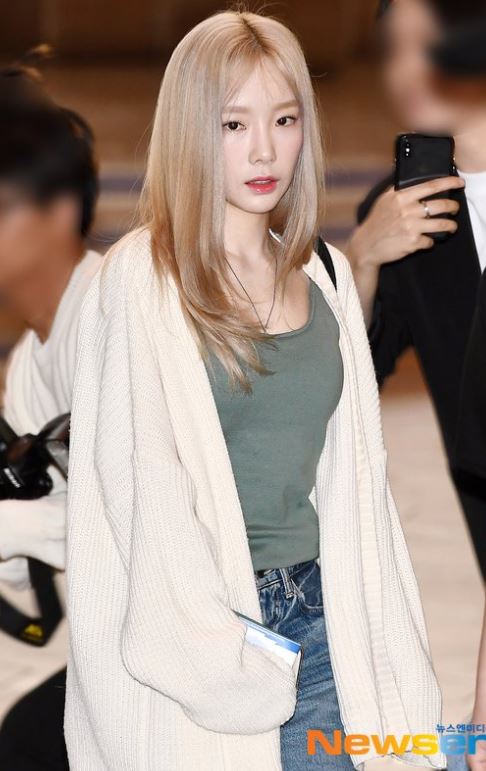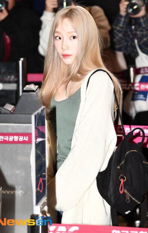近期正在進行日本巡演的太妍,13日從福岡首站開跑,21日,太妍再度現身韓國金浦機場準備飛往大阪,不過當天的機場照卻意外引起網友熱議。照片中,太妍身穿綠色緊身背心,雖然外照白色套卻完全無法遮掩好身材,纖細的腰圍和豐滿上圍完全嶄露無遺,甚至還被捕捉到彎腰時,胸前項鍊上的綴飾就滑進胸前讓網也直呼超級性感,此外,當天髮色也從過去帶黑的淺黃色又再度補染,呈現漂亮的淺金色,髮尾則染上深棕髮色。