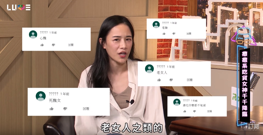 千千提及自已其實是一個心思很細膩的人,時常有人跟她合作拍影片,事後她會花很多時間去檢討自己在影片中的表現,怕自己在訪談中沒有接到對方的話等等,她的心情也很容易受到網友的留言影響,有時候會去糾結於小事情中。Joeman問到她最近為甚麼比較少拍大胃王系列的影片,千千表示其實在台灣許多人會視大胃王是「暴飲暴食、浪費食物」的代表,因此她自己很怕被定型是這樣的人,在選擇影片的主題上也多加考量。