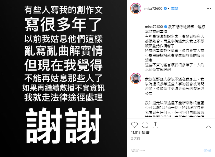 人紅是非多然後我就要當聖母?「米砂」鄭重警告「造謠酸民」:走法律途徑處理!