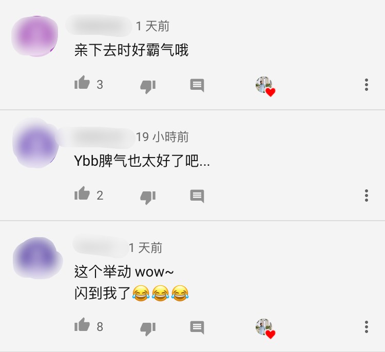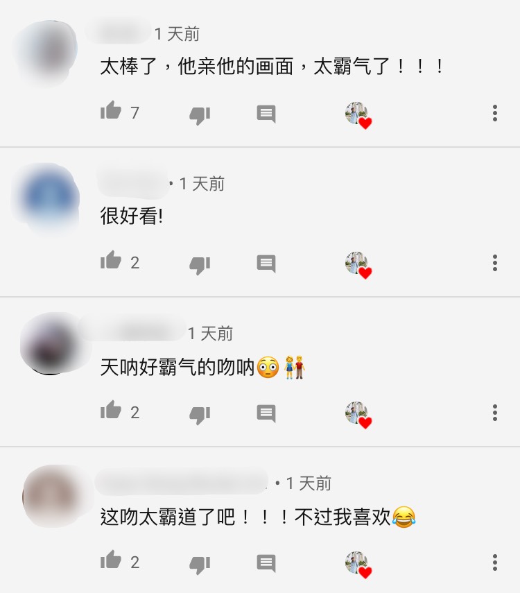 看到這一幕網友們紛紛在下面留言「太霸氣了!」「天吶好霸氣的吻」「這吻太霸道了吧!不過我喜歡」,並有人表示很少有youtuber會在影片上這樣做,兩人的甜蜜互動讓觀眾閃到睜不開眼,看來傲祥非常有撩妹的天分!