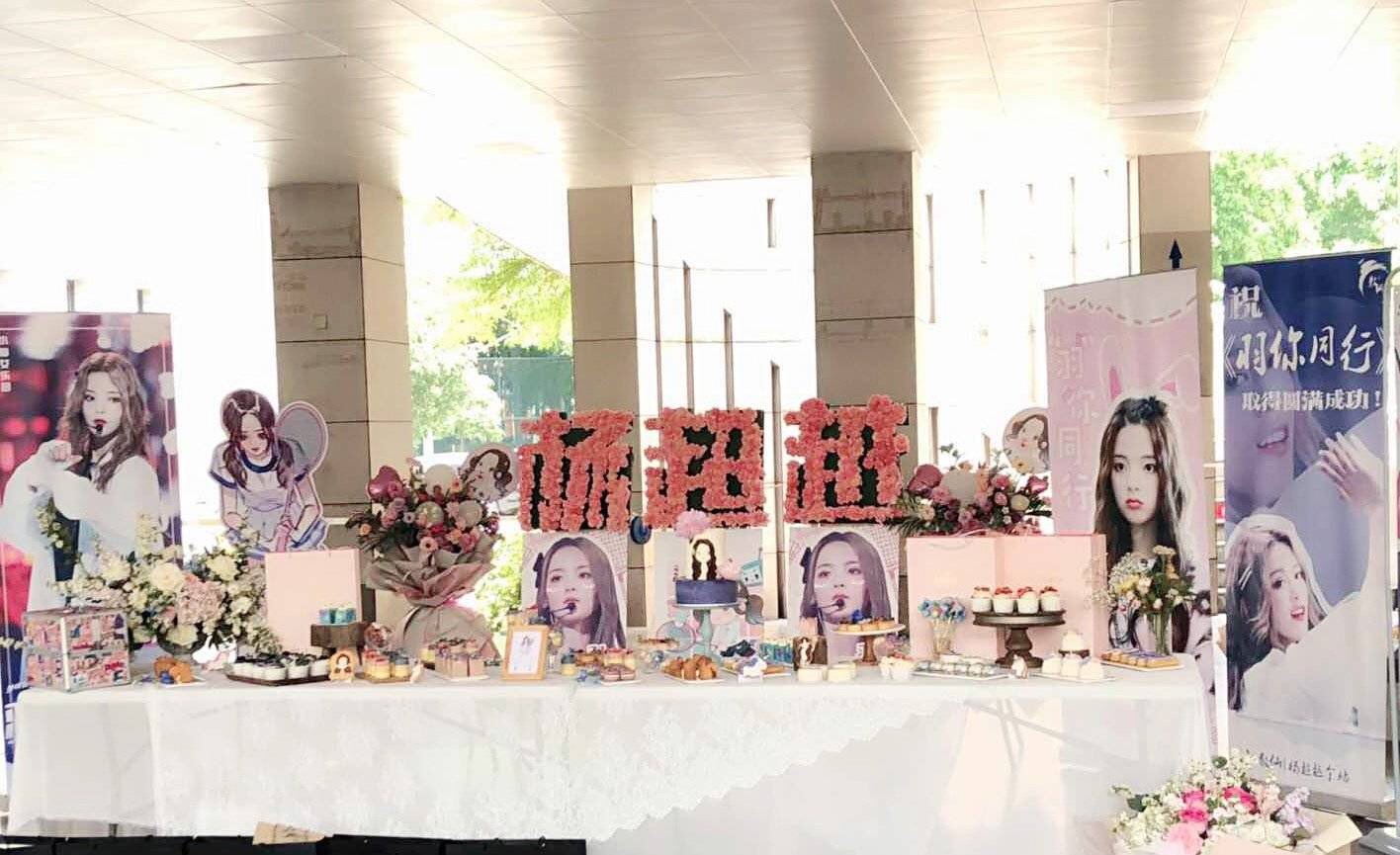 在新劇《極限17羽你同行》許多楊超越的粉絲送上劇組應援,現場可以看見花籃、食物和加油板。各式各樣的應援道具,可以看見還是有許多粉絲對於楊超越的新戲給予大力的支持!