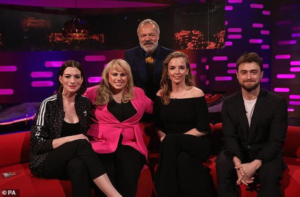 這一次安海瑟薇來到倫敦,正是來與新搭檔瑞貝爾威爾森(Rebel Wilson)宣傳喜劇新片《詐騙女神》(The Hustle),同時也難得與火紅影集《殺死伊芙》(Killing Eve)女主角 Jodie Comer、「哈利波特」丹尼爾雷德克里夫(Daniel Radcliffe)一起登上知名談話性節目 The Graham Norton Show 受訪。