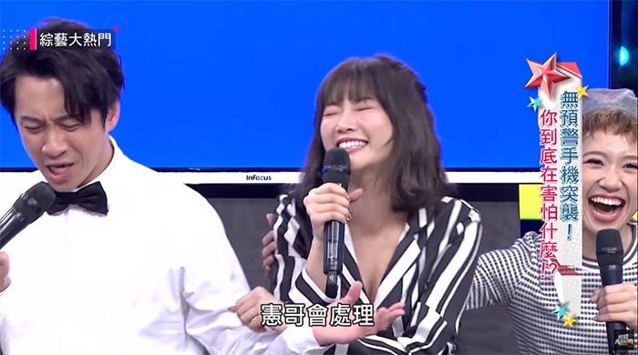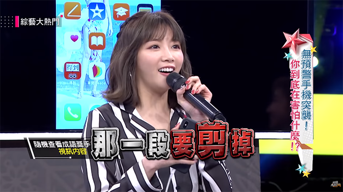 下一秒吳宗憲點進「FaceTime」,通話對象全曝光,成語蕎立刻飛撲跪地把轉接線給拔掉,緊張到整個人在舞台上跳個不停,滿臉都是驚恐表情,整個人超級慌張。還一邊問攝影師「你們剛有拍到嗎?這不能播真的不行!」還一臉認真地說:「欸不好意思那一段要剪掉喔!」只不過成語蕎的行徑讓其他來賓有些無言,于美人還疑惑問:「是有什麼不能播?我跟屈哥一直不能了解?哪方面不能播?」