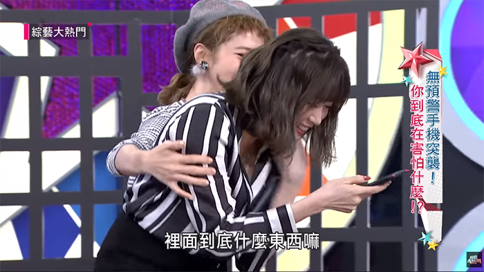 吳宗憲突襲來賓手機,成語蕎衝上前把手機搶回來刪訊息,甚至還把手機夾在胸部裡跑給主持人追,就怕被搶回去,現場超混亂。她一邊喊:「不行啦~不能看我對話!」沒想到費了好大功夫,最後竟然不小心刪錯對話,不該看的全被LULU和吳宗憲看到了,只不過一旁的來賓看得霧煞煞,屈中恆不解地說:「成語蕎是鹹溼的還是什麼?」