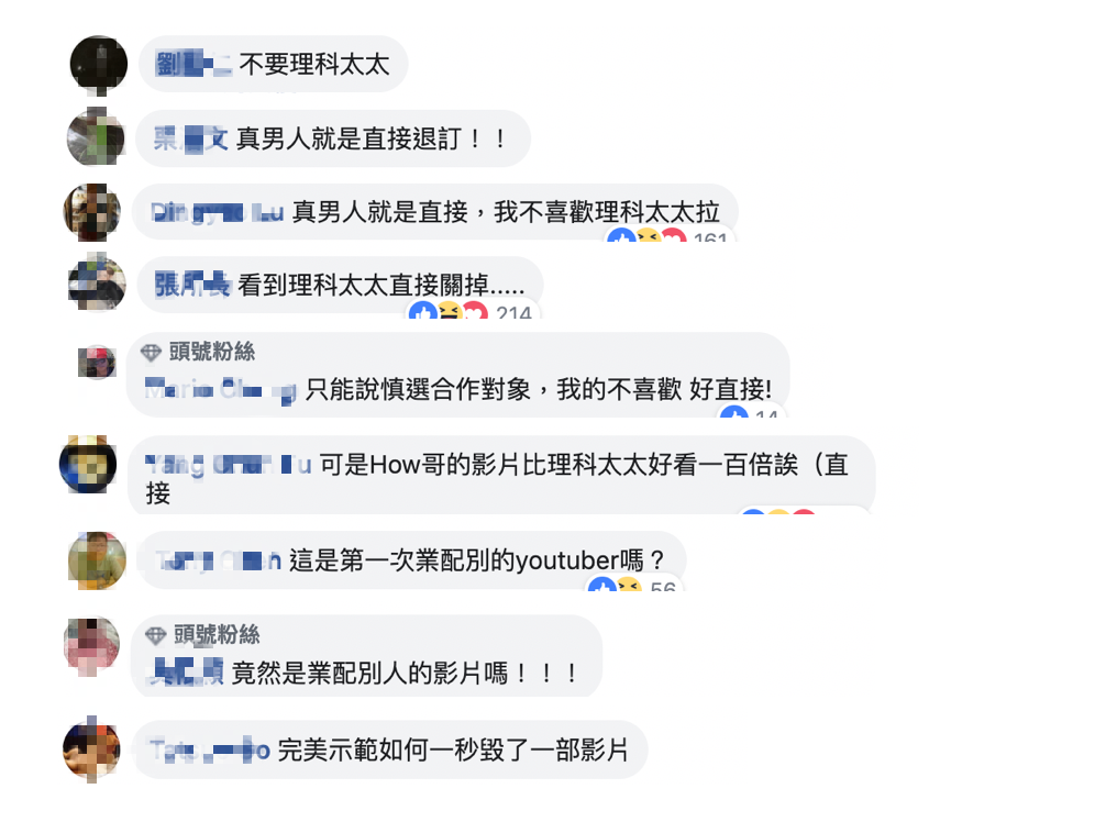 然而網友看見影片出現理科太太後,感到相當不滿,甚至有網友吐槽以為是在幫理科太太業配,紛紛留言:「只能說慎選合作對象」、「可是How哥的影片比理科太太好看一百倍誒(直接」、「看到理科太太直接關掉.....」、「真男人就是直接,我不喜歡理科太太拉」、「這是第一次業配別的youtuber嗎?」、「真男人就是直接退訂!!」