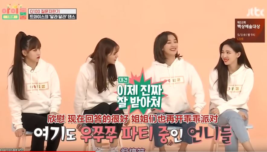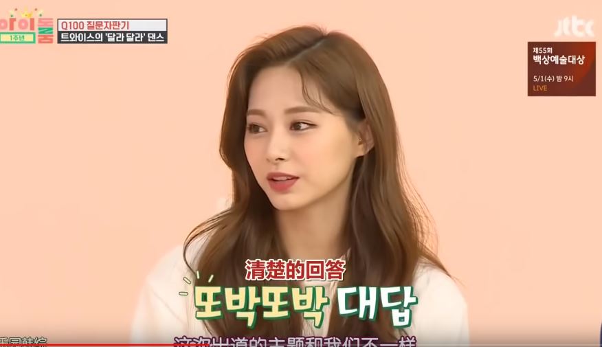 23日,女團TWICE終於3度現身綜藝《Idol Room》,而是逢節目開播滿1周年,TWICE更將一連錄製兩集回饋觀眾,節目中老么子瑜則被問及面對師妹團ITZY出道的心情,對此,平常話不多的子瑜這回不疾不徐的回應「出道的概念跟我們很不一樣,覺得很新鮮、很搞笑,也會一直看他們的舞台。」,面對沉著回答的子瑜,一旁的姐姐們也點頭露出欣慰神情,而定延也直呼「真的回答的很好」。