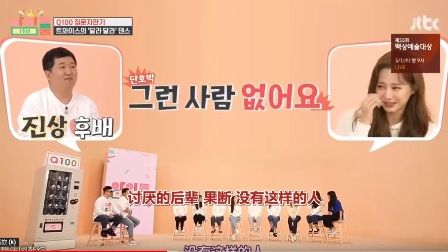 沒想到主持人卻不打算放過子瑜,又再度連續說到「我想快點成功,透露捷徑吧」、「不行啊,真的很想快點紅起來」,子瑜面對主持人連環拷問,忍不住說到「沒有這樣的人」最後子瑜拿出一貫「冷處理」的態度,低頭沉默後看向遠方,被主持人揶揄「前輩怎麼無視人」這才放過子瑜。