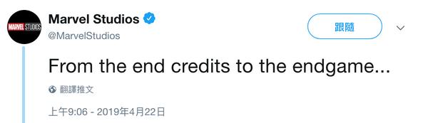 — Marvel Studios (@MarvelStudios) 2019年4月22日