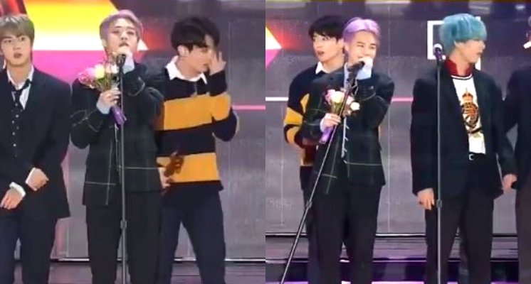 事實上,1月BTS現身頒獎典禮「首爾歌謠大賞」時,當時也是蟬連大賞、本賞和年度專輯實力驚人,不過就在發表感言時,由於麥桿實在太高,Jimin發現自己還要店腳或抬頭說話,最後乾脆動手傾斜麥克風,瞬間讓現場哄堂大笑。