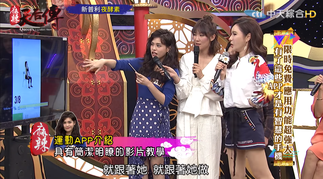 夏宇童在節目中介紹一款免費的運動APP,可以記錄運動的時間、跑步的里程,甚至還能智能制定計畫,根據每個人的狀況調整難度。另外,她還介紹了一款清潔APP,能在上面預約專人幫你打掃家裡,清塵螨、洗衣清、冷氣全都能預約,讓現場來賓聽得好心動,還強調服務專員大多都是很壯的男生,讓現場又是一陣騷動。