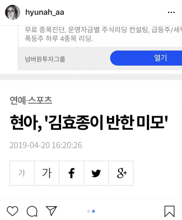 韓國性感女神泫雅自從公開與E'dawn的戀情後,時不時地會在自己的IG上更新兩人甜蜜的照片,羨煞所有粉絲。近日,她出席了知名品牌 Valentino的活動,美貌再度吸引媒體大肆地拍攝,其中有篇報導標題竟下「泫雅,讓E'dawn迷戀的外表」,引起了泫雅的關注。