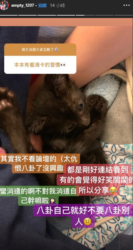 本本這次也表示其實自己不太喜歡看論壇,「太仇恨太八卦了沒興趣」,她也呼籲雖然論壇中的討論很消遣,不過還是希望大家不要不要太過八卦,「八卦自己就好,不要八卦別人」。