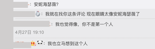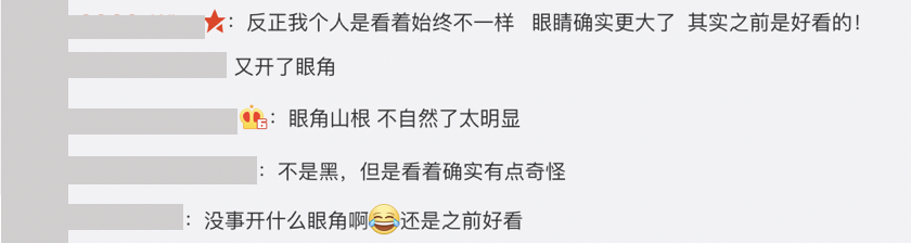 上週五(26號)時,《奔跑吧》第七季正式播出第一集,然而播出後網友卻發現Angelababy的眼睛似乎又比以前更大了一些,臉部整體的比例有些不協調,網友們也紛紛留言討論:「沒事開什麼眼角啊,還是之前好看」、「不是黑,但是看著確實有點奇怪」、「眼角山根 不自然了太明顯」、「又開了眼角」、「反正我個人是看著始終不一樣 眼睛確實更大了 其實之前是好看的!」,甚至有網友認為她現在的樣子很像女神「安海瑟薇」。