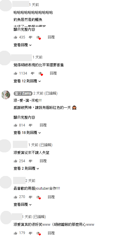 而影片播出之後,兩人的互動也引起討論:「釣魚居然是釣鱷魚 太猛了一整個大爆笑」、「覺得胡椒表現的比平常還要害羞」、「狠愛演從來不讓人失望」、「狠愛演真的很好笑www(胡椒罐裝的那麼用心www」,也因為胡椒安排的約會行程太有個人風格,讓人印象深刻。