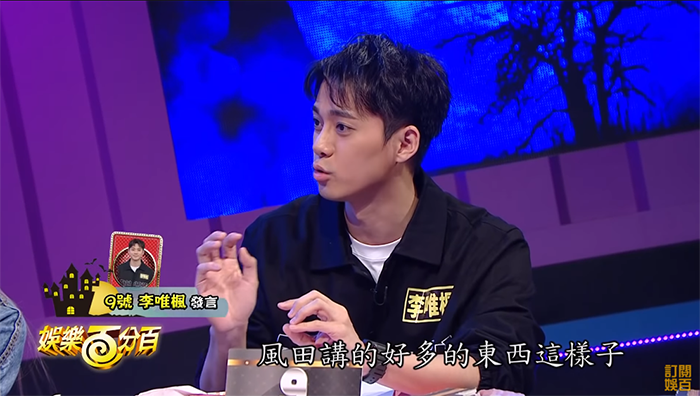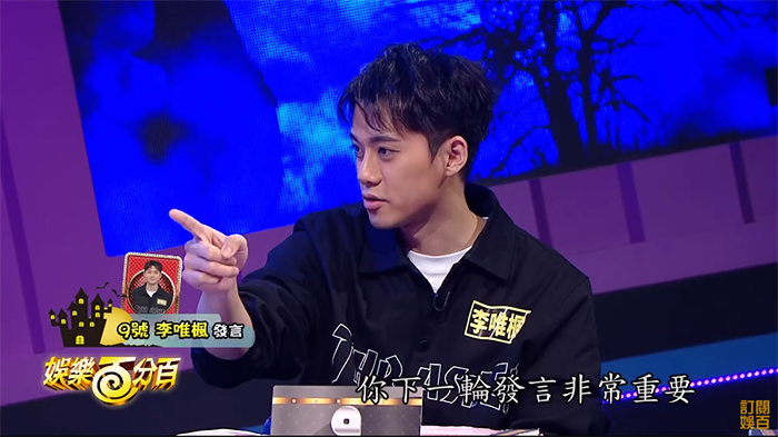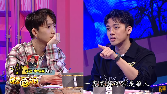 《娛樂百分百》的「狼人殺」單元在網路上擁有大批粉絲關注,最新一集邀請到李唯楓擔任嘉賓,出身《大學生了沒》的李唯楓第一次上節目,卻引起眾多觀眾反彈,他先是直言簡廷芮的妹妹是「心機婊」,接著又說聽不懂風田講中文「發言很笨」,過程中不僅一直插其他來賓的話,還要嘻小瓜不要搶他鏡頭,讓網友們看不下去痛批:「自以為是又白目!可以封殺了!」
