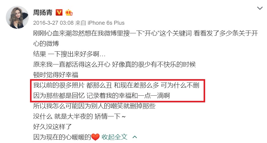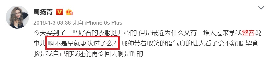 在今年4月初時,周揚青曾做了讓許多NBA球迷都相當羨慕的事,她坐在知名NBA球星LeBron James旁邊看球,而她幾乎全程都在低頭滑手機,即便如此能夠有幸坐在明星球員旁邊一起看比賽,讓許多球迷們都相當羨慕。然而周揚青美豔的外表一直都是大家相當關注的焦點之一,過去周揚青在就曾在微博上多次承認自己整形,2016年時她曾寫下:「最近為什麼又有一堆人過來拿我整容說事,啊不是早就承認過了嗎?」,也曾發出自己整形之前的照片大方自嘲自己以前「很醜」,如此坦白率真的個性也獲得許多粉絲的認同與支持。