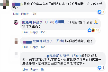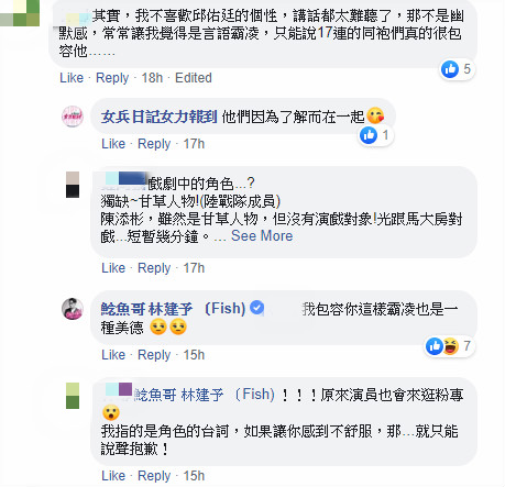 事後,鯰魚哥在自己的臉書發文:「我怎麼演那是我的事!我爽~是你們入戲太深,你們不爽~ 也要怪你們自己入戲太深!不懂的用藝術欣賞。」不少粉絲也湧入給予好評,認為他將角色演得相當到位:「演技太好也是困擾阿~」、「這部真的演得非常非常棒」、「演什麼像什麼就對了」、「做自己就好」。