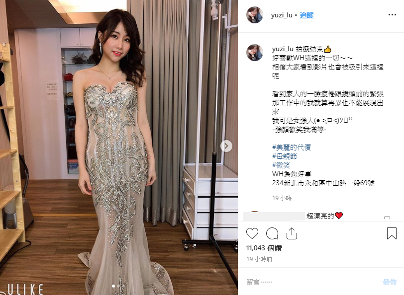 路路近日精心籌備母親節企劃,雖然沒有透露太多細節,不過她也在IG中上傳照片吊大家胃口!只見照片中,她身穿一襲灰色的薄紗長裙,上頭還有銀色的水鑽鑲飾,性感又不失唯美,也因為路路的薄紗很透明,使得性感的身形若隱若現,姣好的上圍也相當吸睛,整體造型讓粉絲十分驚豔。