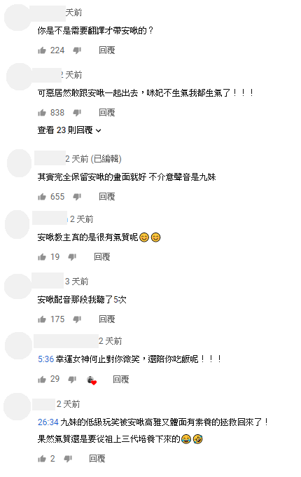 影片播出之後,除了有網友提到九妹怎麼沒有帶女友「咪妃」來吃之外,也有許多粉絲大讚安啾超有氣質,「安啾教主真的是很有氣質呢」、「安啾好漂亮,有安啾一定要看一下」,還有網友搞笑調侃Joeman:「九妹的低級玩笑被安啾高雅又體面有素養的拯救回來了! 果然氣質還是要從祖上三代培養下來的」,只能說兩人的合作真的超級有話題。