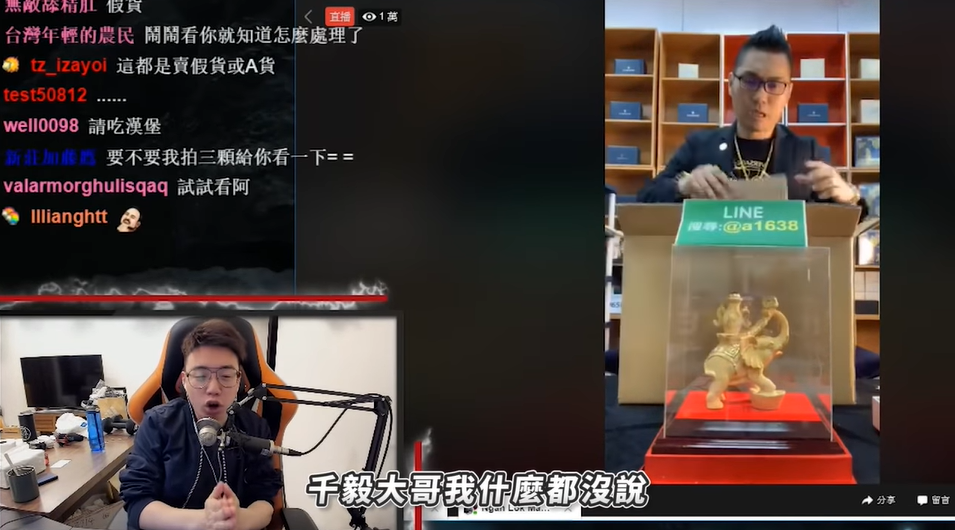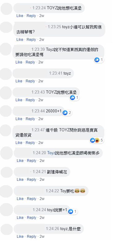 近日Toyz在開台時和觀眾聊到連千毅,他也表示自己是以跟長輩學習的心態看他直播,「想知道如果有人去鬧他,他怎麼處理」,還搞笑詢問連千毅賣的東西是正貨還是假貨。沒想到他的觀眾也立刻湧入連千毅的直播,還留言打上:「Toyz說他想吃漢堡」、「Toyz說不知道東西真的假的,要請他吃漢堡嗎」、「Toyz說他想吃漢堡跟養樂多」、「Toyz說要+1」。