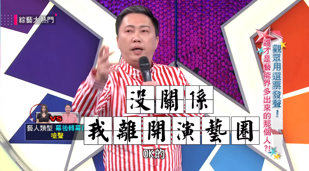 趙正平是幕後轉幕前的資深藝人,近日在《綜藝大熱門》中,他遭指控「明顯倚老賣老」,不只最後一個進棚還不Re稿,甚至還被爆出人前一套人後一套,趙正平忍不住說:「沒關係,我離開演藝圈!」吳宗憲也在一旁直言:「這個就叫做走心了!」