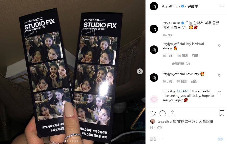 ITZY的作品宣傳期結束後,高人氣又擁有青春活力的他們就成為不少時尚品牌的寵兒,近期則為美妝品牌「M.A.C」代言最新唇膏,2日,替品牌為期三天的快閃活動站台,更在現場舉辦小型的粉絲見面會。而從ITZY官方IG釋出的照片中,5人罕見超齡穿搭以黑色和大地色系展現優雅氣質,引起大批粉絲盛讚「ITZY每個人都是門面啊」、「都是我心中的女神」,成員也在文中向粉絲喊話「今天很開心看到大家,希望能再見到你」展現親民的一面。