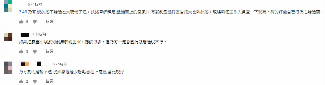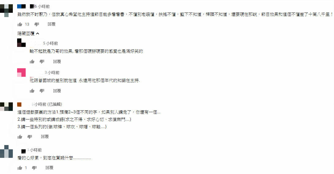 最後乃哥好心通融,「OK啦!給妳機會!」卻讓網友們看不下去:「乃哥說扶搖不給過也太硬坳了吧,現場叫個工作人員查一下就有,搞的好像自己很佛心給過關」、「乃哥真的是輸不起,沒知識還是去看點書再上電視會比較好」、「我真心希望他主持這節目能多看看書,不懂別老裝懂」、「輸不起就是乃哥的效果,看那個硬掰硬要的感覺也是滿好笑的」、「看的心好累,到底在質疑什麼」、「自己詞不多別一直否定別人,你又脾氣差沒人敢說啥」、「建議乃哥認知上沒有的知識先別急著否定別人,否則被打臉的都會是自己。」