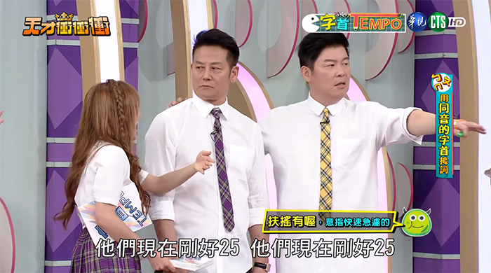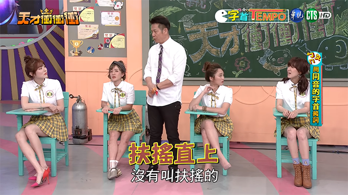 《天才衝衝衝》進行到「字首TEMPO」關卡時,城城隊派出劉璇、林彥君、張文綺及陳怡嘉,隊員必須在節拍上,用「ㄈㄨˊ」開頭的字首接詞,只要成功接一個詞就可以獲得一分。劉璇第一個講了「扶搖」,當時沒有人喊卡,直到張文綺接第15個詞時出錯,乃哥卻突然說「什麼叫扶搖?」強調沒有扶搖這個詞,應該是「扶搖直上」才對。