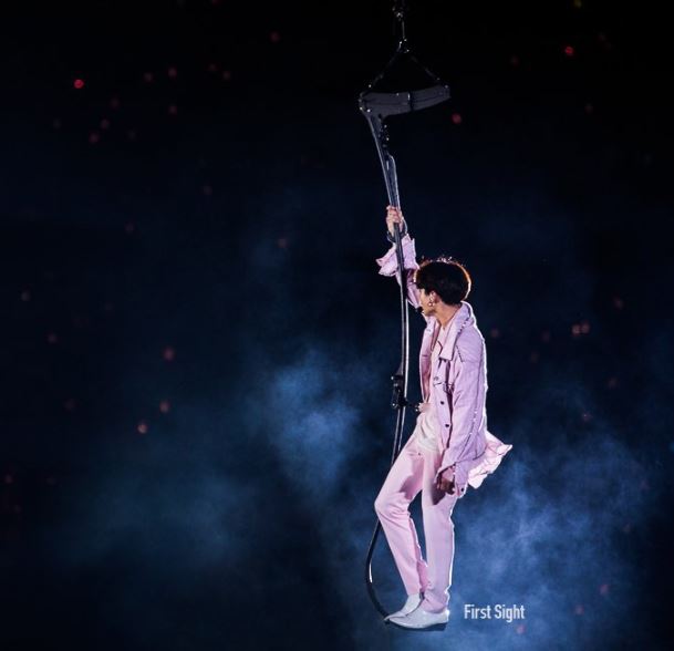 4日,防彈少年團新一輪世界巡演終於在美國洛杉磯起站,當天場館容納6萬名粉絲齊聚一堂,而成員柾國在演唱歌曲收錄於專輯《Love Yourself 結 'Answer'》中的Solo曲《Euphoria》時,竟在高空中「飛天」環繞整個演唱會場地,不過低頭看柾國只採在一塊比自己的腳長還小的踏板上,雖然身上有綁著安全繩,不過為了精彩演出安排的橋段仍讓粉絲直呼「超級可怕」、「一看到時真的很焦慮」。