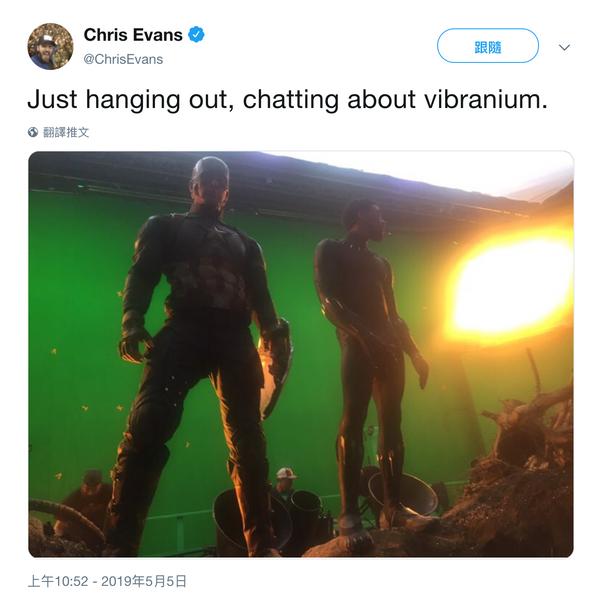 「美國隊長」克里斯伊凡(Chris Evans)終於可以 PO 出片場照片了,真的乖乖遵守羅素兄弟(Russo Brothers)「防雷禁令」,第一張 PO 出與「黑豹」查德威克鮑斯曼(Chadwick Boseman)在片場的照片,也有趣的寫上:「我們就是在閒聊一些關於汎合金的事情」,未來相信也會有越來越多的珍貴照片,隨著「防雷禁令」的結束從演員們的社群上釋出。
