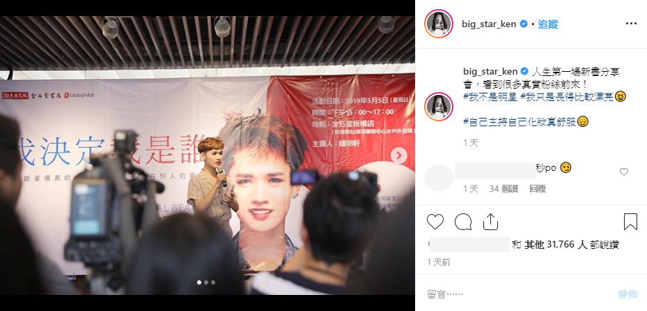 鍾明軒近日出新書《我決定我是誰》,內容講述他從爆紅到被霸凌的心路歷程,5日他舉辦新書分享會,也自己擔任主持人,一如影片中的模樣相當有自信!這次他也特別發文:「人生第一場新書分享會,看到很多真實粉絲前來」,心情相當好!