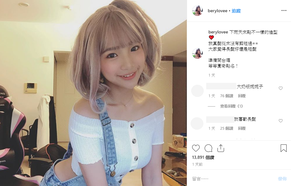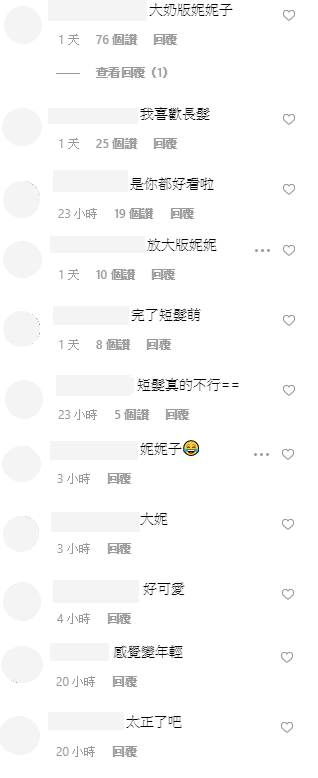 粉絲也紛紛留言:「我喜歡長髮」、「是你都好看啦」、「完了短髮萌」、「短髮真的不行」、「太年輕了 莓姨變莓姐」、「長髮最讚啦」,評價十分兩極,不過也有超多網友認為貝莉莓的短髮贈型和另一位實況主「妮妮」非常相似,「怎麼好像妮妮子」、「妳妮妮?」、「大X版妮妮子」、「放大版妮妮」。