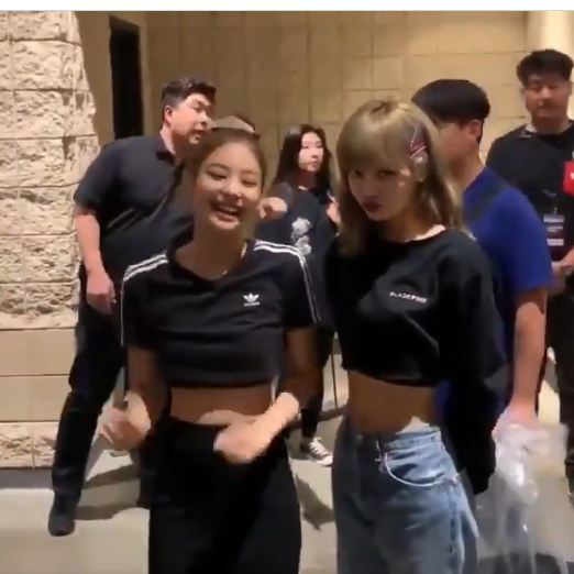 而Lisa在旁聽到粉絲的要求,沒有太多尷尬的情緒,開心的揮手向歌迷致謝,反而做出時尚大秀的姿態,表現超時尚的神情,讓粉絲殺底片拍照;隨後,Jennie也在IG PO出當天的照片,穿著與巡演一樣的愛迪達身色上衣,顯然心情不受影響,然而,BLACKPINK這段影片也在網路上瘋傳,也讓粉絲看得笑哈哈,不少粉絲都大讚BLACKPINK是超親民的偶像團體。
