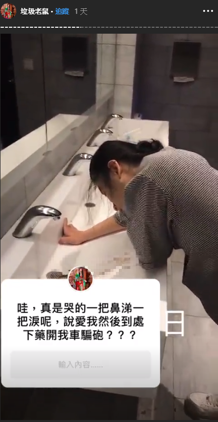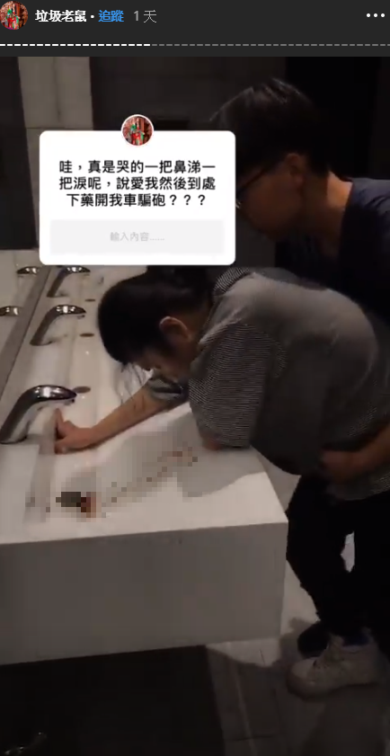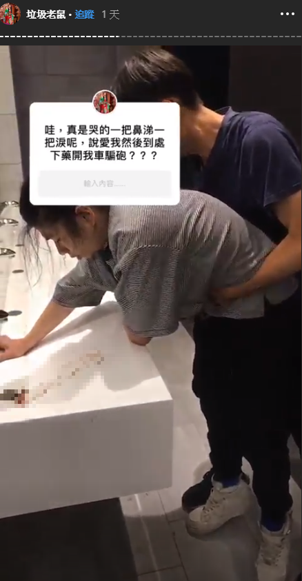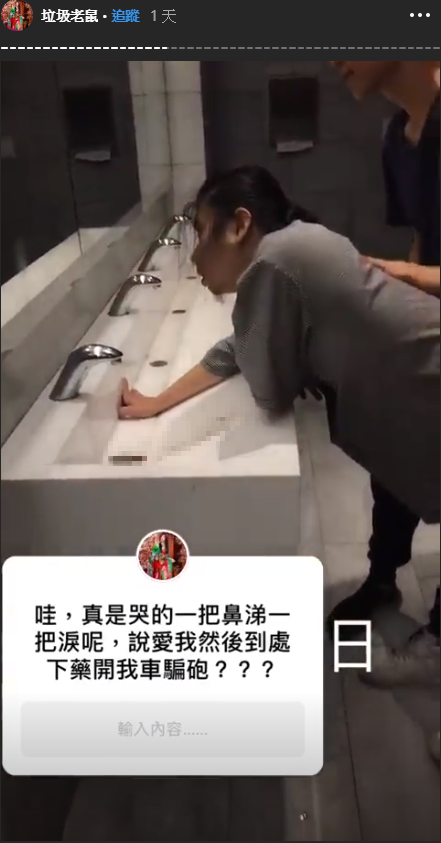 只見影片中教授鼠鼠靠著洗手台不斷作嘔,模樣十分狼狽,而這也是教授鼠鼠首次有「沒戴口罩」的畫面曝光,雖然與平時的樣子相差不多,還是引起許多網友注意。而友人也再度說道:「這不是博取同情喔,是我從來沒看到鼠鼠這樣子過,我真的希望你們兩個可以好好在一起」,不過對此王姓女模則打上:「哇,真是哭得一把鼻涕一把累呢,說愛我然後到處約炮開我車騙炮?」,仍然怒火中燒。