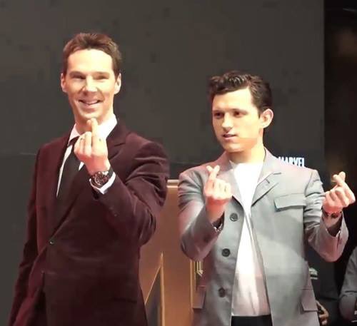 漫威英雄電影《復仇者聯盟:終局之戰》在全球熱映,電影中飾演英雄的演員們也受到粉絲們的關注,其中奇異博士更是因為一個愛心手勢讓網友瘋狂討論,事情發生在電影上映前演員們分批到各國宣傳時,飾演「奇異博士」的班奈迪克康伯拜區(Benedict Cumberbatch)和飾演洛基、蜘蛛人、螳螂女的演員們一同到韓國與粉絲見面,當時入境隨俗應要求英雄們共同比出愛心手指,但沒想到奇異博士沒能掌握要領,比出怪異的手勢讓一旁的蜘蛛人都看傻。