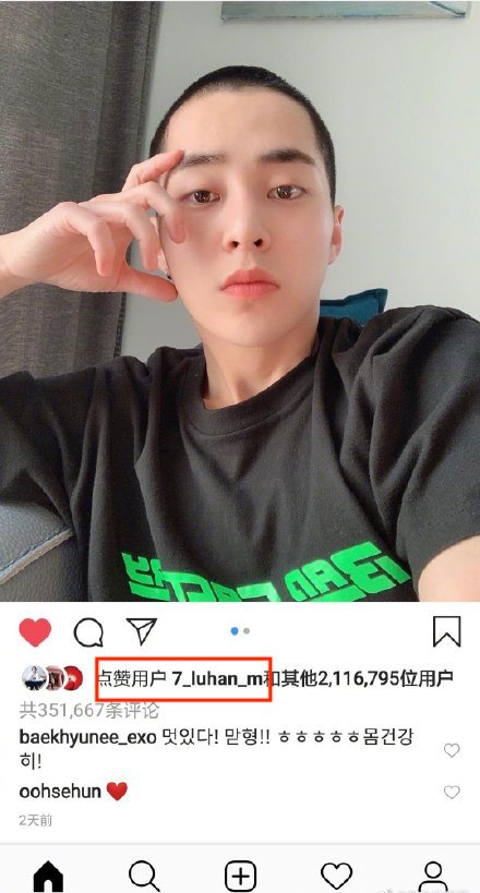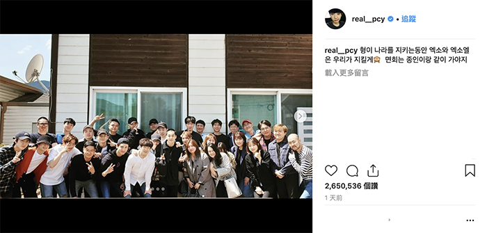 XIUMIN在昨日(7號)正式成為EXO第一位入伍的成員,而燦烈也在IG上發出成員們以及公司前、後輩、工作人員們一起歡送XIUMIN的大合照,並寫下:「哥在守衛國家的時候,EXO和EXO-L就由我們來守護!」,照片也展現出EXO成員之間相當深厚的友誼。然而,有眼尖的網友發現前成員鹿晗點讚了XIUMIN平頭的貼文,讓許多團粉相當激動,認為鹿晗還是有默默的在關心他們,甚至私底下可能也有聯繫。