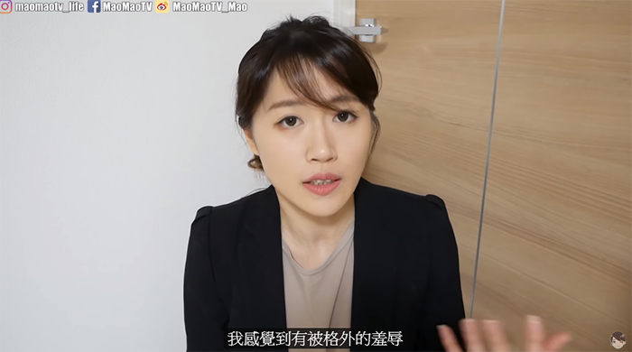 Mao,是台灣知名YouTuber,目前居住在日本京都,頻道「MaoMao TV」主要是分享一些於日本留學時的所見所聞,偶爾也會出現一些生活小記錄,甜美的外型加上頻道多元又有趣的內容讓MaoMao累積了大量的關注,目前youtube頻道已超過74萬粉絲追蹤。而近日Mao在影片中和大家分享自己曾經被性騷擾的經驗,更表示自己感到極度的不舒服!