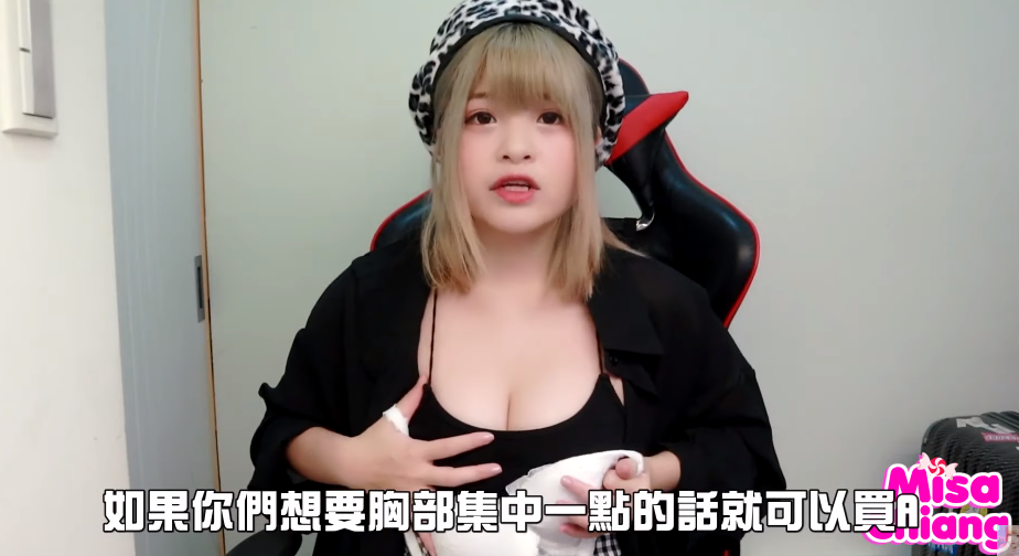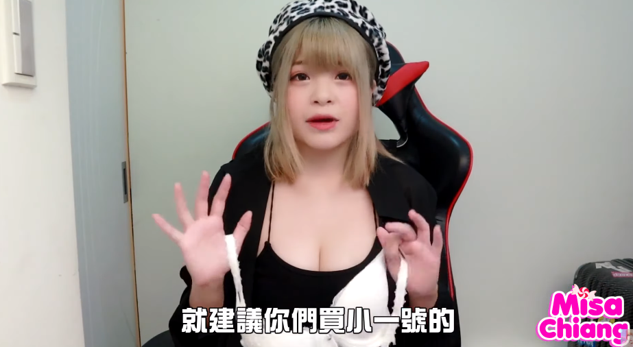 除此之外米砂也特別提到自己是C罩杯,不過這次她也特別買了一件A罩杯的內衣,更建議粉絲可以買小件的來增加視覺感,「如果你是B的話,我建議買A,雖然這樣好像不太健康,不過為了達到爆乳效果,我是建議買小一號」,不過她也說明下腰圍還是要買合適的,免得骨頭不舒服。之後她也果真試穿了A罩杯的內衣,「我就是想讓它集中到爆」,穿上之後她也滿意說道:「就是鄰家少女的感覺」。