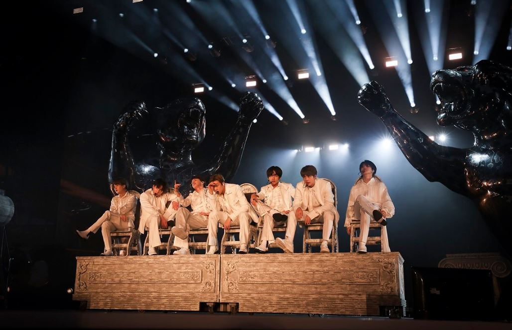 而演唱會中,由於柾國還不太能用英文和台下觀眾互動,竟以比手畫腳的方式,要求RM用英文幫他翻譯,RM則同步口譯「把你們的手燈藏起來,用手機,現在科技很棒」現場觀眾除了遵守柾國要求,也笑成一片。
