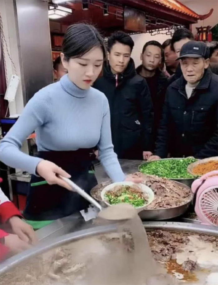 前陣子在抖音上有網友上傳一家牛肉麵店的店員正在盛麵的模樣,而在該則影片中那位女生五官相當清秀,穿著也相當時尚,除了外表有網友也稱她心地也非常的善良,還會經常背著老闆給顧客加大量的牛肉,非常的大方。她自己也有經營抖音,目前擁有百萬粉絲追蹤,她也時常和網友們互動,讓這間牛肉麵店生意越來越興隆,然而近日有網友稱他遠從2230公里遠的地方前去朝聖,但結果卻令他非常失望。