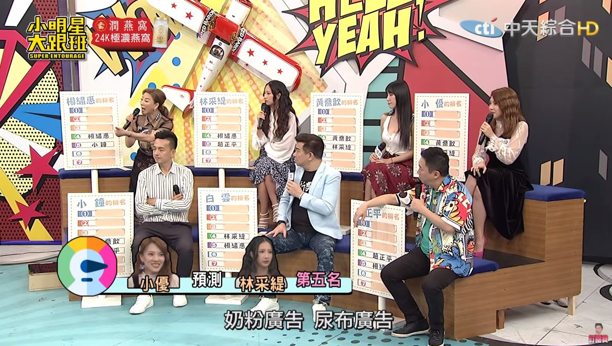 楊繡惠透露,其實人妻沒有不好做,因為林采緹是辣媽,反而有很多種賺錢放式,「奶粉廣告、尿布廣告」等等,不過話講到一半,小鐘接著說:「可是一般這種都要跟另一半一起拍,所以她有點難度」,現場氣氛瞬間降到冰點。