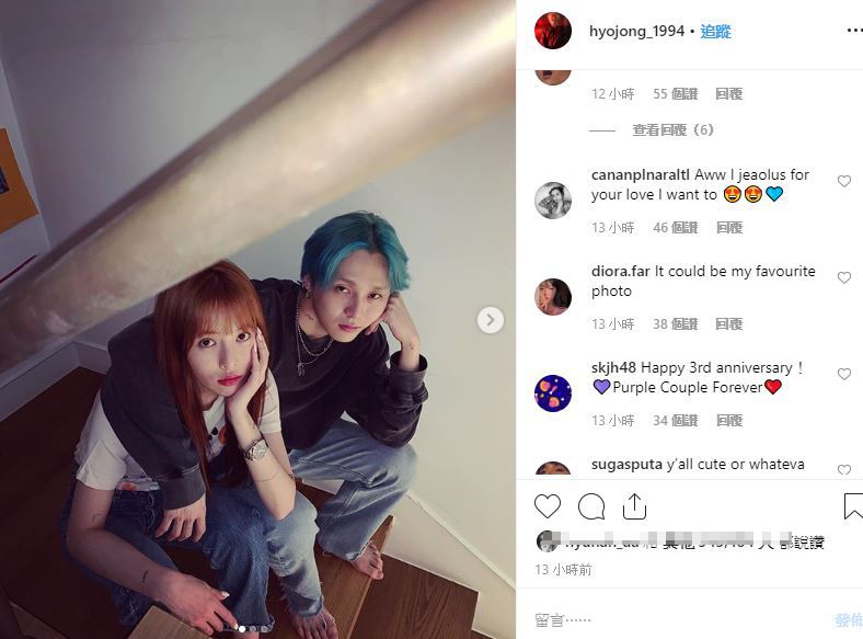 同時E’dawn也在個人IG公開相同系列照,少了甜膩畫面卻多了情侶間打鬧氛圍,像是坐在樓梯間裡板著臉對視,或是泫雅頑皮的將一隻腳跨到E’dawn肩膀上,一幕幕的放閃畫面都讓網友羨慕表示「攝影師一定很尷尬吧」、「3周年快樂」、「你們好幸福啊」。