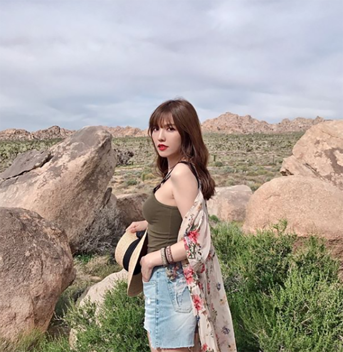 不過她同時也在hashtag打上:「貧乳的勵志文」,還表示:「衣服不敢穿出門只好飯店騷一騷」,一改前面的感性風格,讓許多粉絲看了哭笑不得。