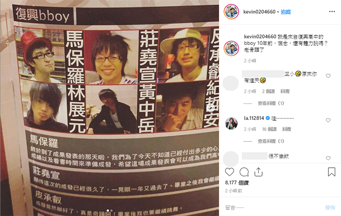 酷炫今(10)日在IG中貼上十年前的照片,並且打上:「我是來自復興高中的bboy 10年前,懷念,還有體力跳嗎?老骨頭了」,只見第一張照片中就可以在中間找到他的本名「莊堯宣」,不過有趣的是,他與十年前的模樣相差甚遠,不僅鏡框超窄,頭髮也是8+9的風格,超塌的瀏海也和現在帥氣的髮型十分不一樣,讓人乍看之下幾乎認不出來!
