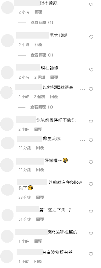 而照片上傳之後,因為第一張照片中和酷炫現在的潮男形象有所差距,網友也紛紛留言,「很不像欸」、「男大18變」、「現在帥慘」、「以前額頭就很高」、「你以前長得好不像你」、「非主流哦」、「殺馬特酷炫」、「請問臉哪裡整的」、「有音波拉提有差」。