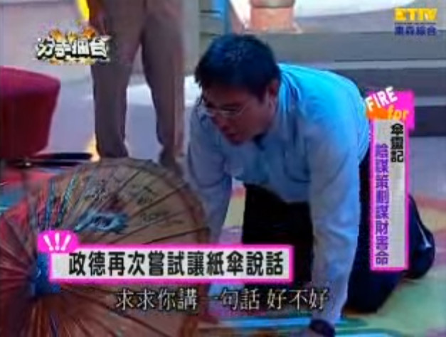 《分手擂台》當初在台灣掀起一陣熱潮,製作人正是「荒謬大師」沈玉琳,每一集節目都會邀請失和的家人或情侶在節目上大吵一架,成了節目的高潮片段,並由現場的主持人判斷。只不過每次吵架的內容都相當荒唐,甚至還有靈異情節在其中,最具代表性的一集就是〈傘靈記〉,男子帶著一把會說話的紙傘來到現場,說傘裡有個男人的靈魂,被老婆謀財害命;但老婆堅決否認,咬定是老公劈腿有小三,兩人在現場掀起一陣腥風血雨。雖然劇情很瞎,但卻讓觀眾看得津津有味,至今恐怕也沒有節目比它更荒唐!